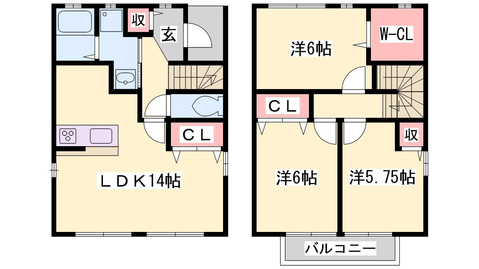 - LDK14帖、洋室6帖、洋室6帖、洋室5.75帖