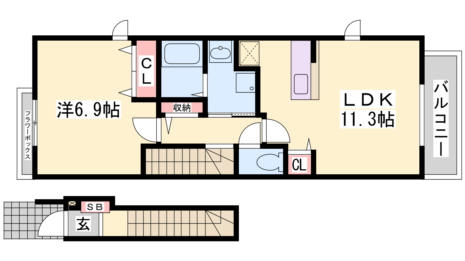- LDK11.3帖、洋室6.9帖