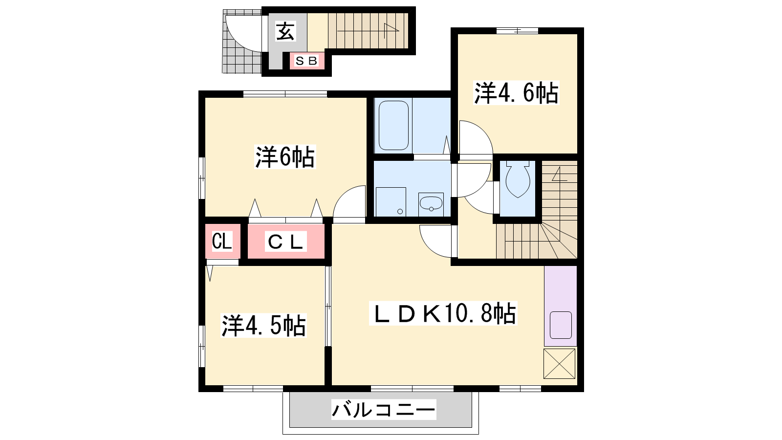 - LDK10.8帖、洋室6帖、洋室4.6帖、洋室4.5帖