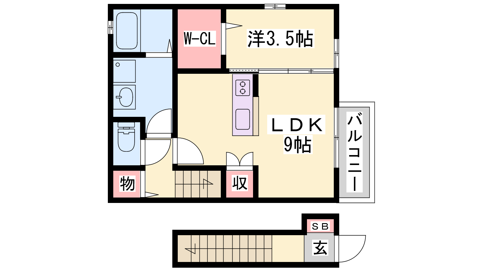 - DK9帖、洋室3.5帖