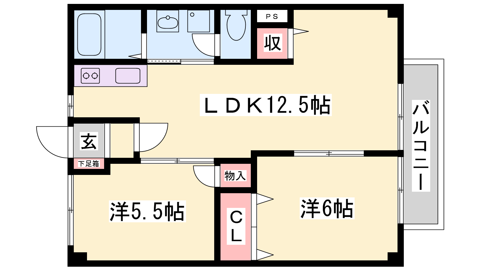 - LDK12.5帖、和室6帖、洋室5.5帖