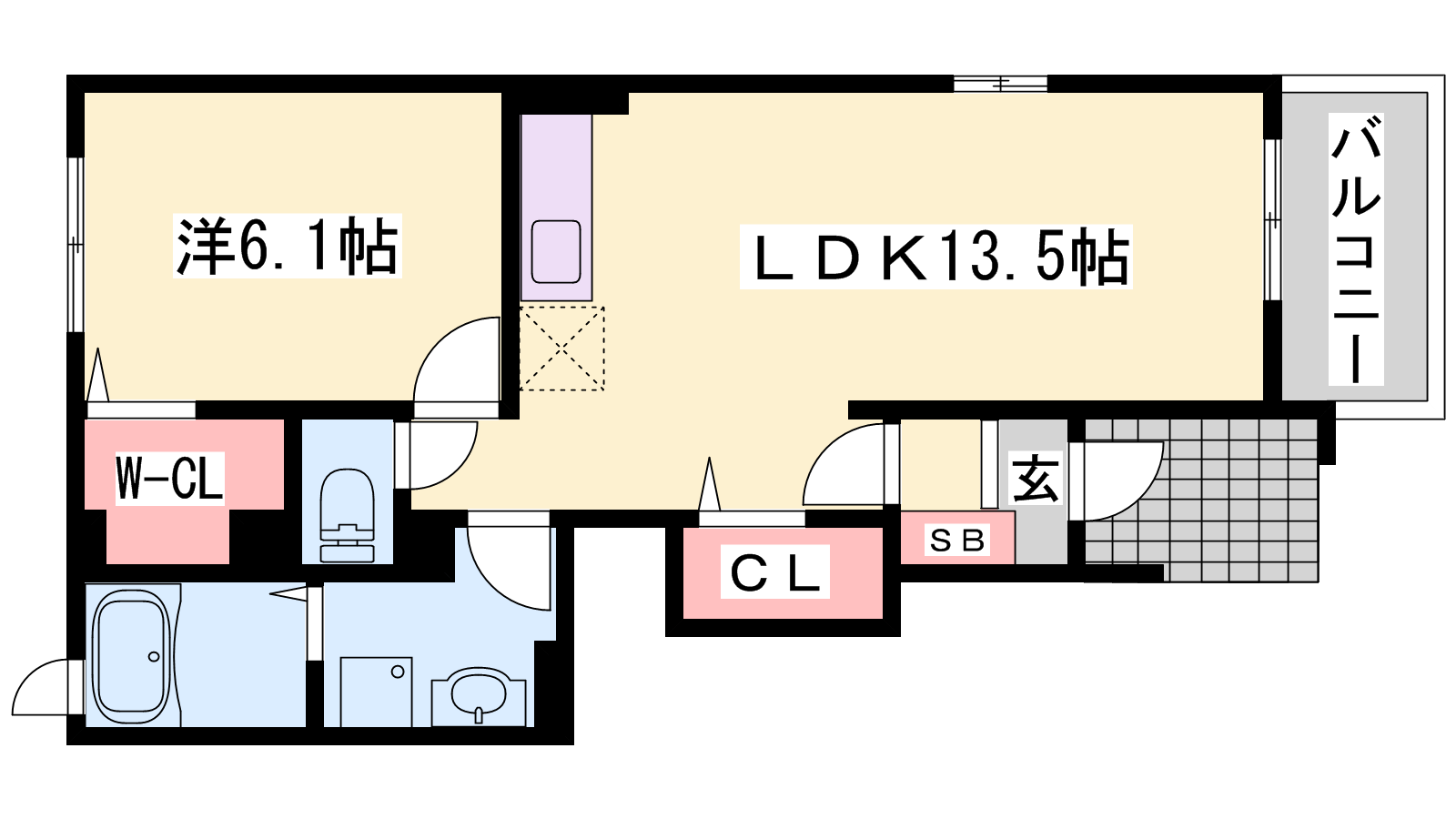 - LDK13.5帖、洋室6.1帖