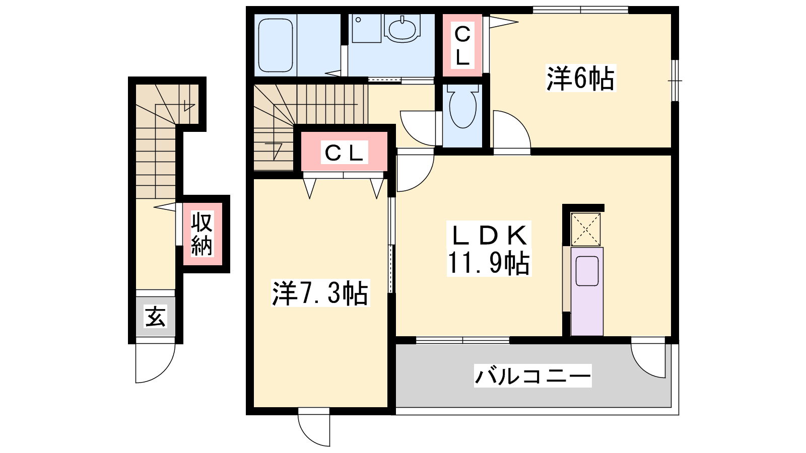 - LDK11.9帖、洋室7.3帖、洋室6帖
