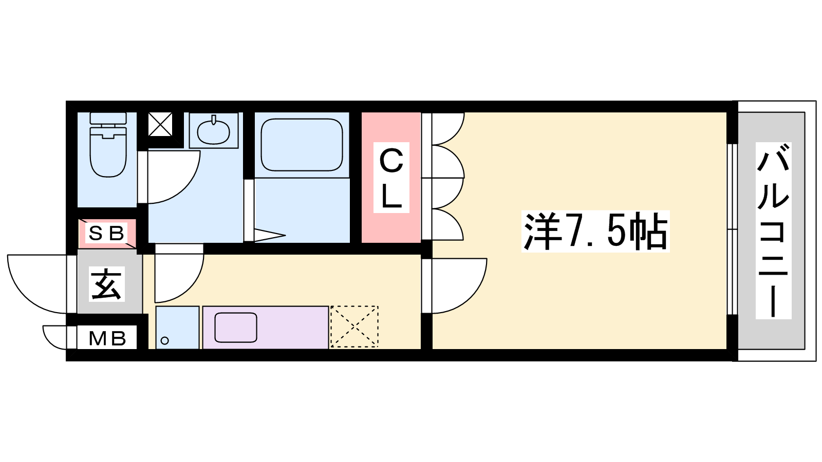 - K2.5帖、洋室7.5帖