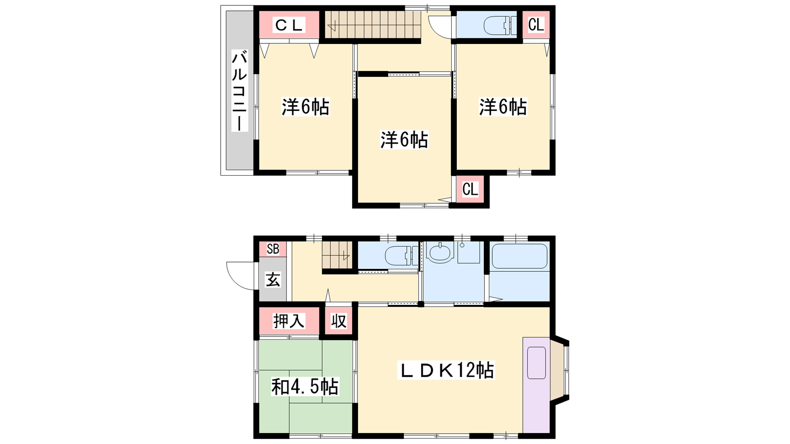 - LDK12帖、洋室6帖、洋室6帖、洋室6帖、和室4.5帖