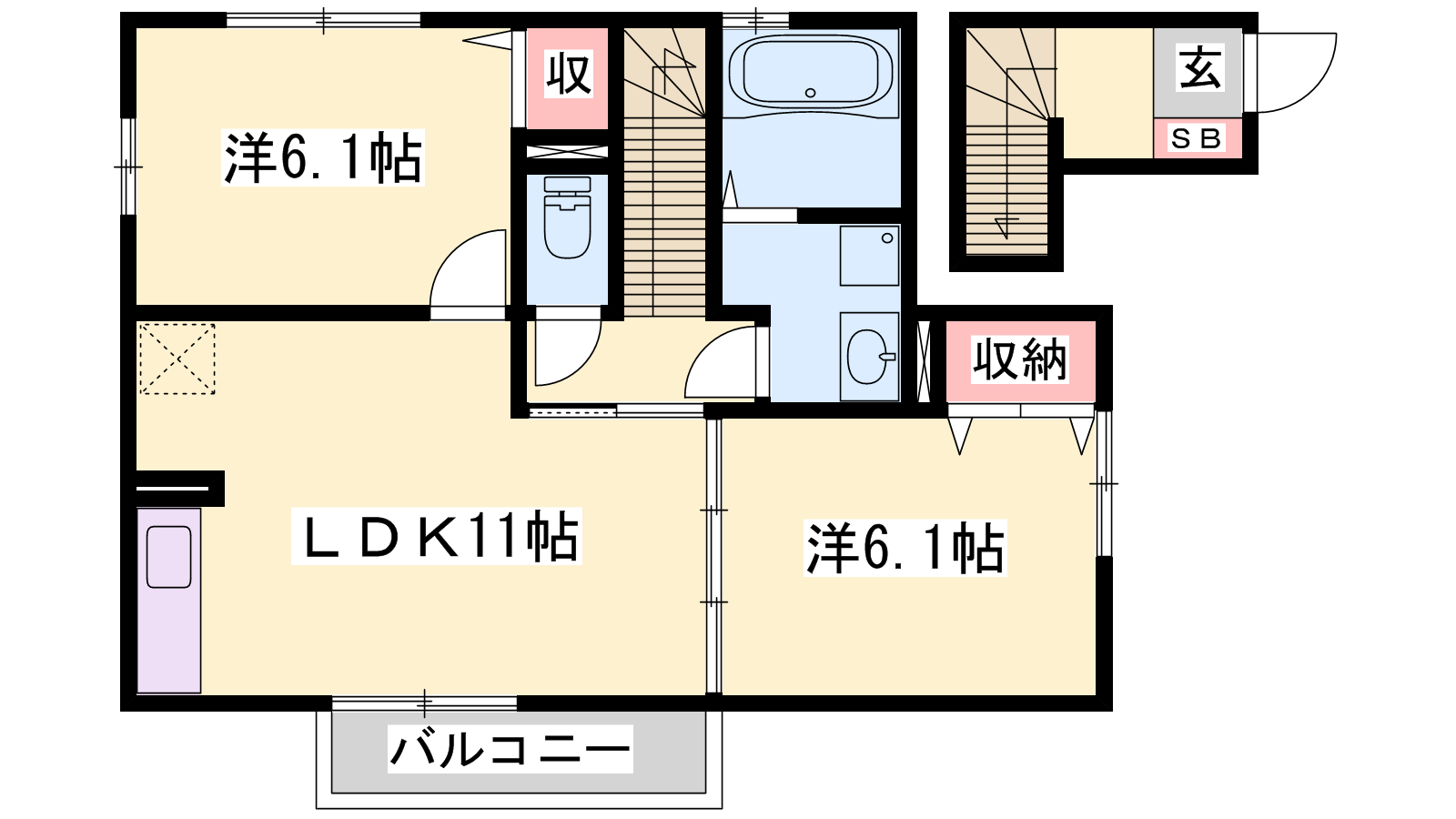 - LDK11帖、洋室6.1帖、洋室6.1帖