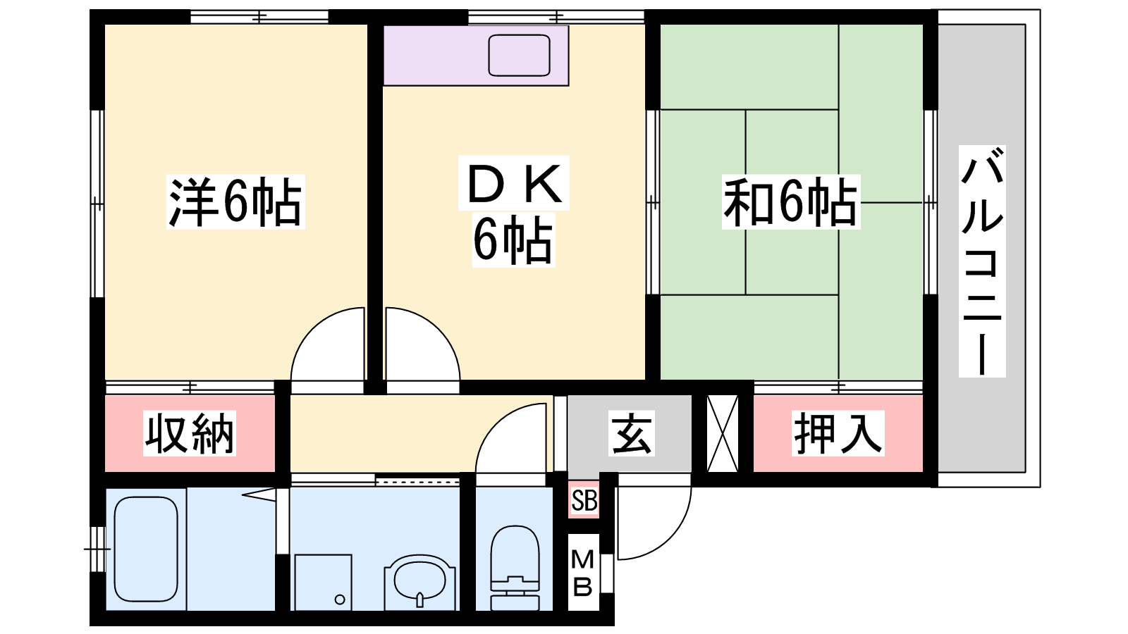 - DK6帖、洋室6帖、和室6帖