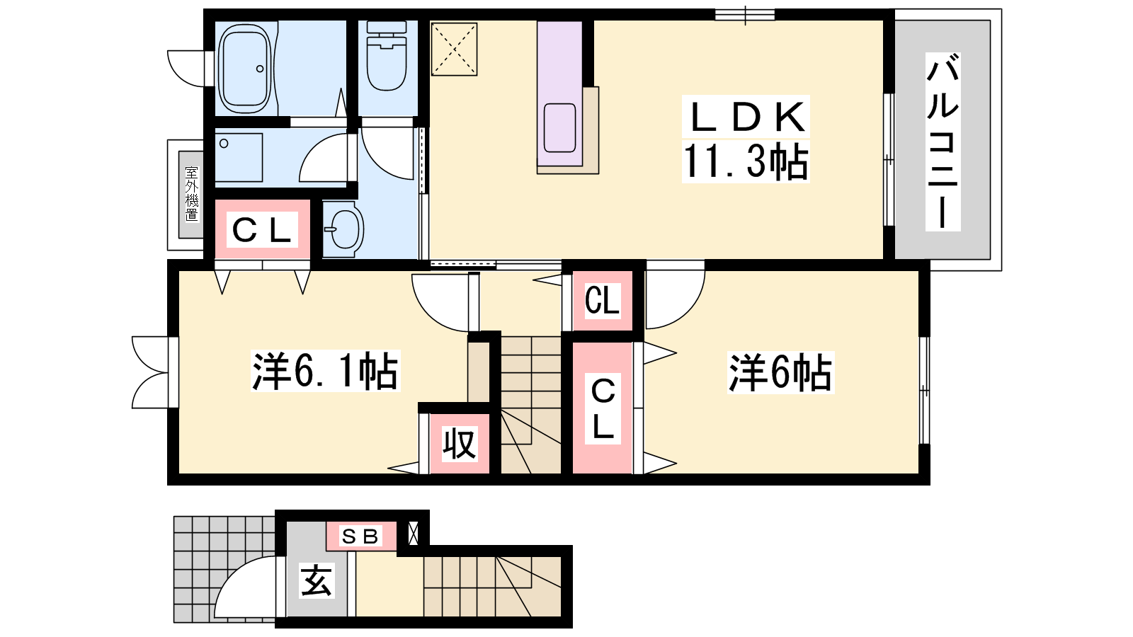 - LDK11.3帖、洋室6.1帖、洋室6帖