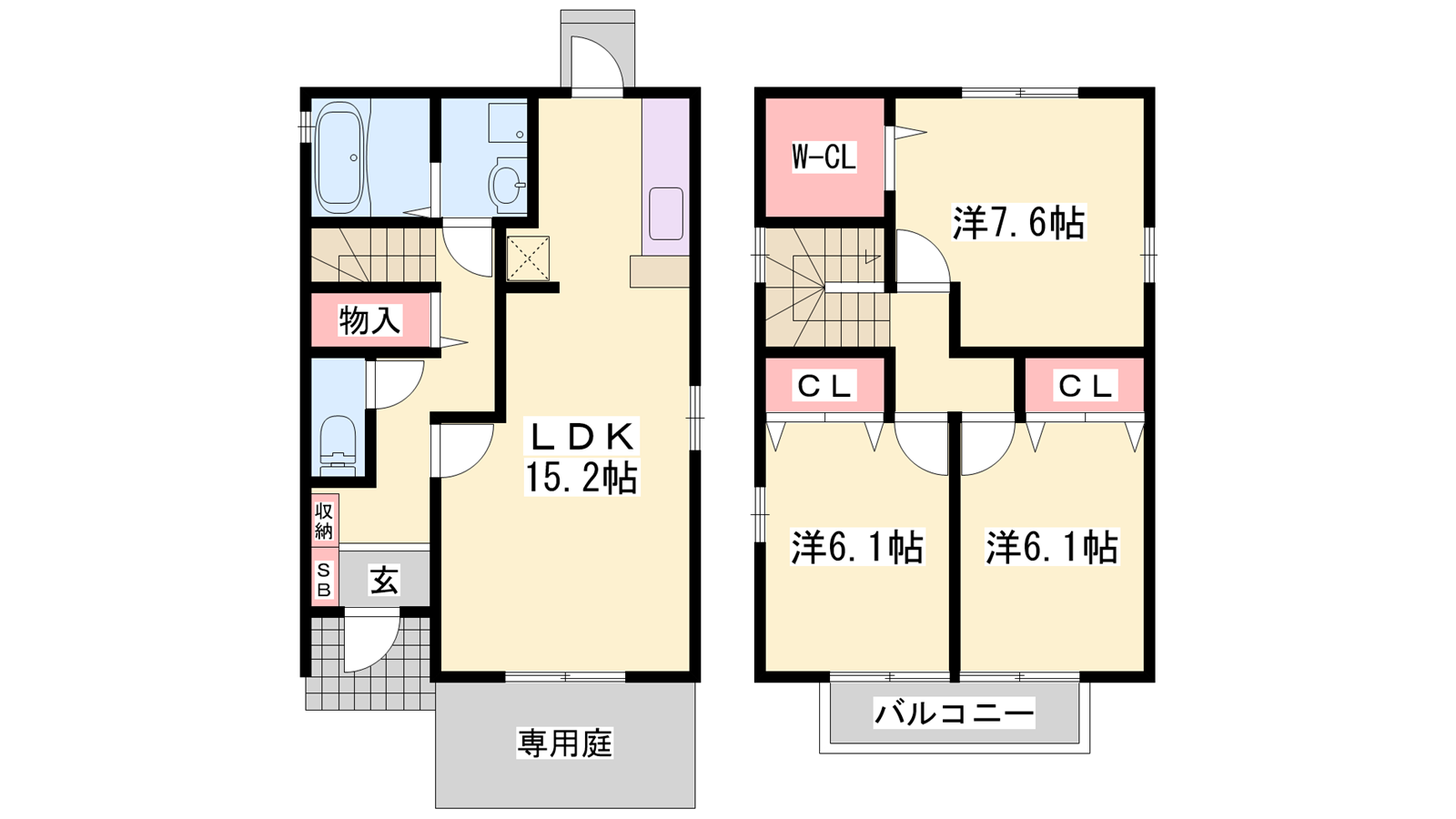 - LDK15.2帖、洋室7.6帖、洋室6.1帖、洋室6.1帖