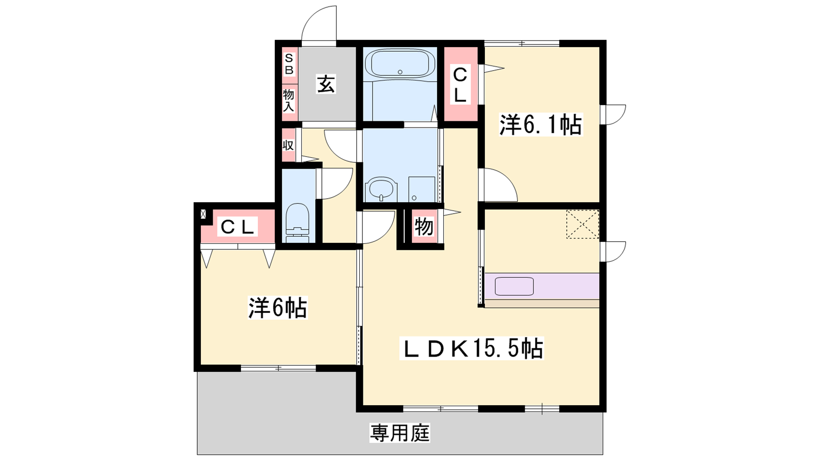 - LDK15.5帖、洋室6.1帖、洋室6帖