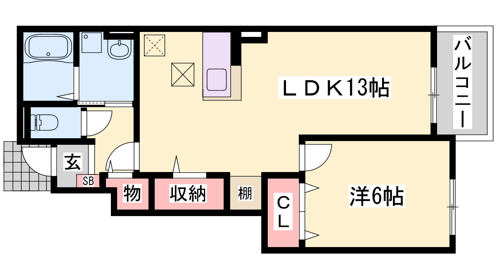 - LDK13帖、洋室6帖