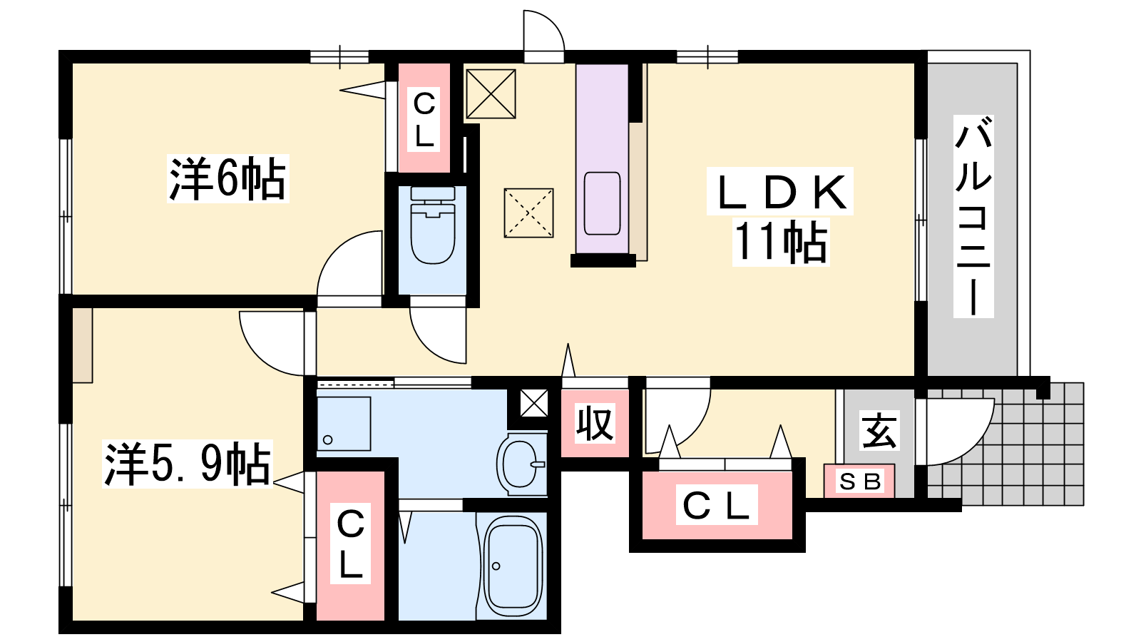 - LDK11帖、洋室6帖、洋室5.9帖