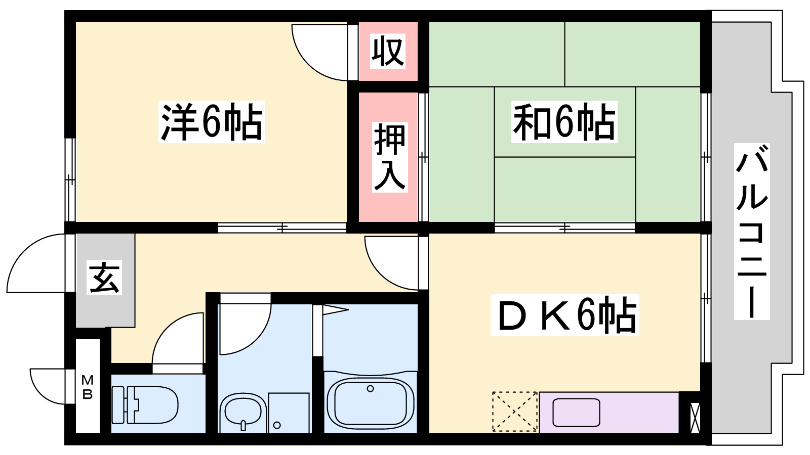 - DK6帖、和室6帖、洋室6帖