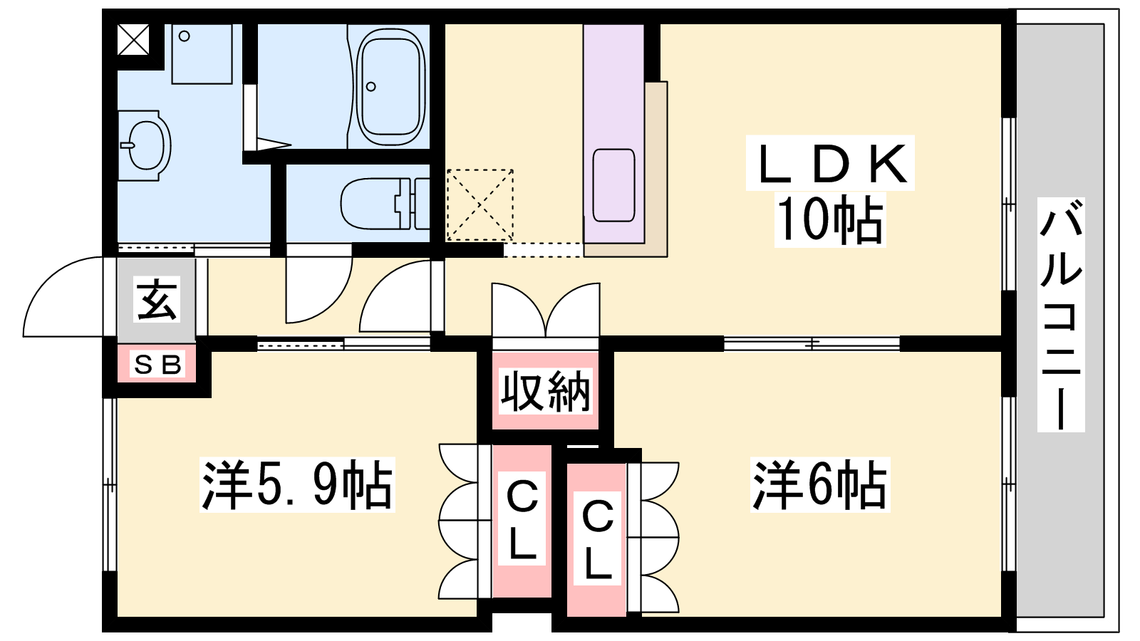 - LDK10帖、洋室6帖、洋室5.9帖