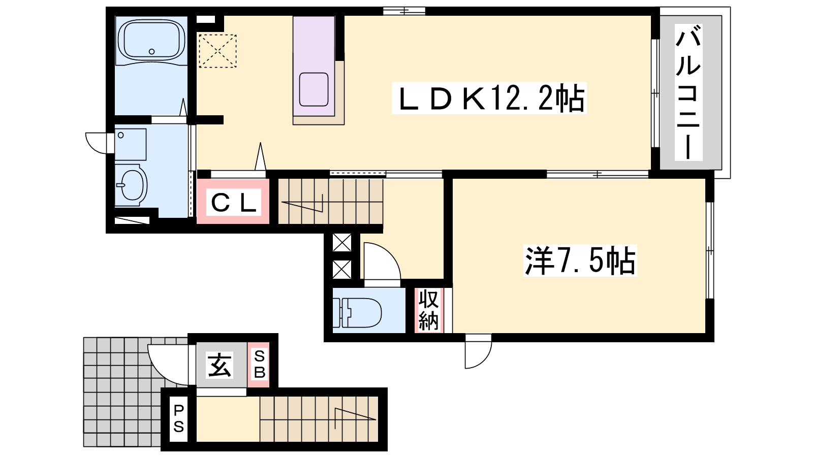 - LDK12.2帖、洋室7.5帖