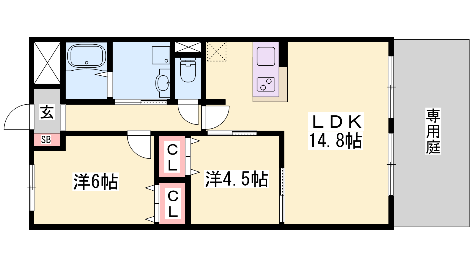 - LDK14.8帖、洋室6帖、洋室4.5帖