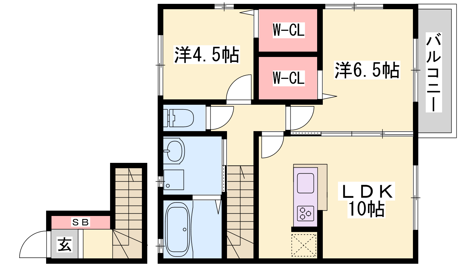 - LDK10帖、洋室6.5帖、洋室4.5帖