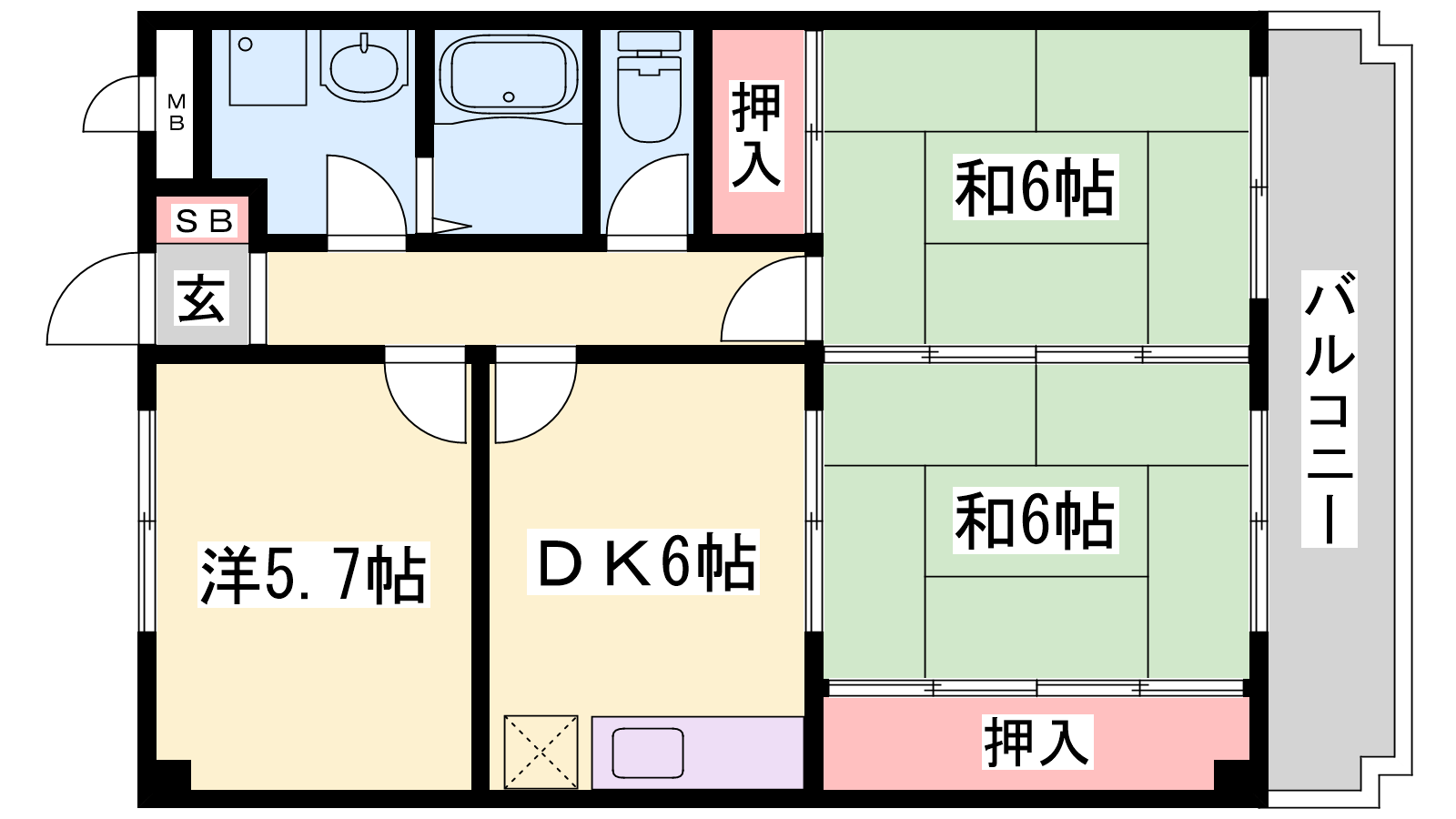 - DK6帖、洋室6帖、和室6帖、和室6帖