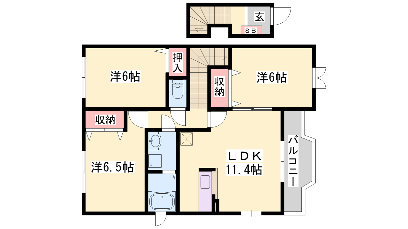 - LDK11.4帖、洋室6.5帖、洋室6帖、洋室6帖