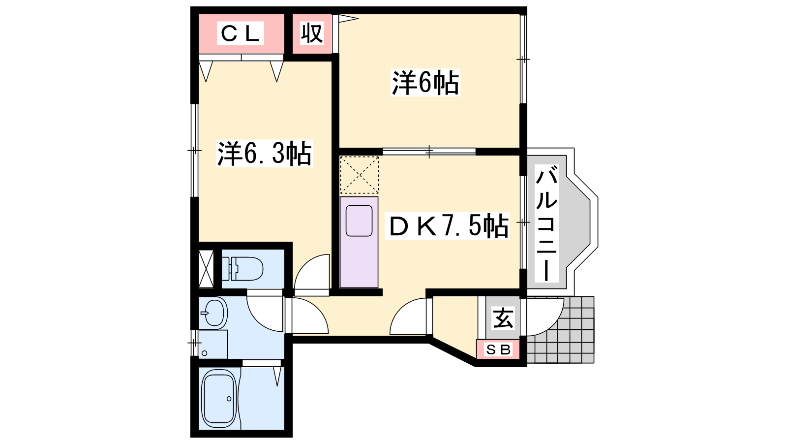 - DK7.5帖、洋室6.3帖、洋室6帖