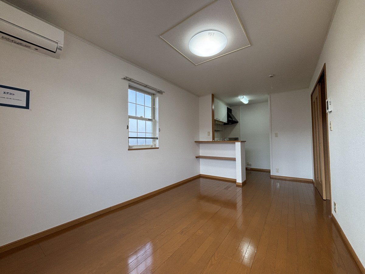 リビングにエアコン付き 敷地内駐車場完備 2階部分の角部屋です