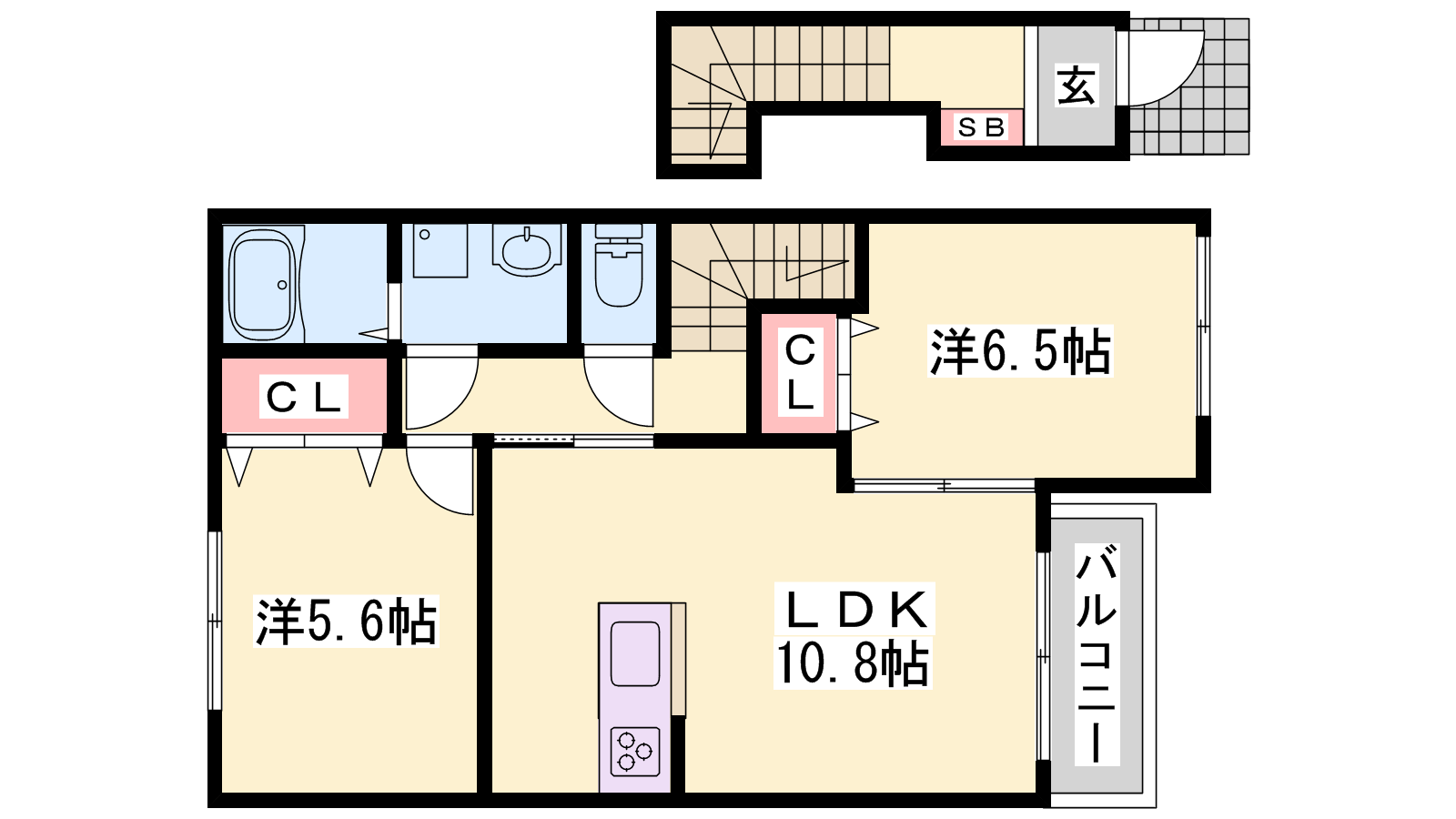 - LDK10.8帖、洋室6.5帖、洋室5.6帖