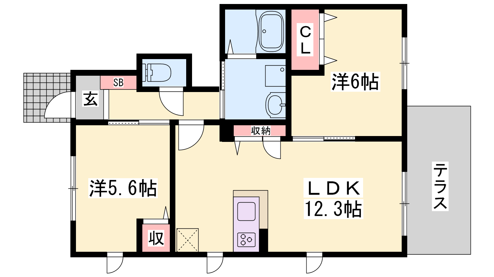 - LDK12.3帖、洋室6帖、洋室5.6帖
