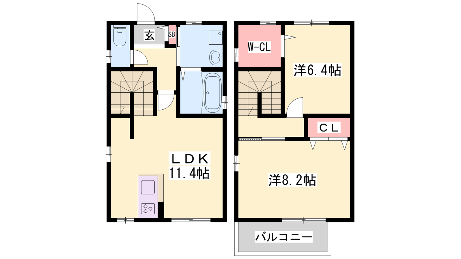 - LDK11.4帖、洋室8.2帖、洋室6.4帖