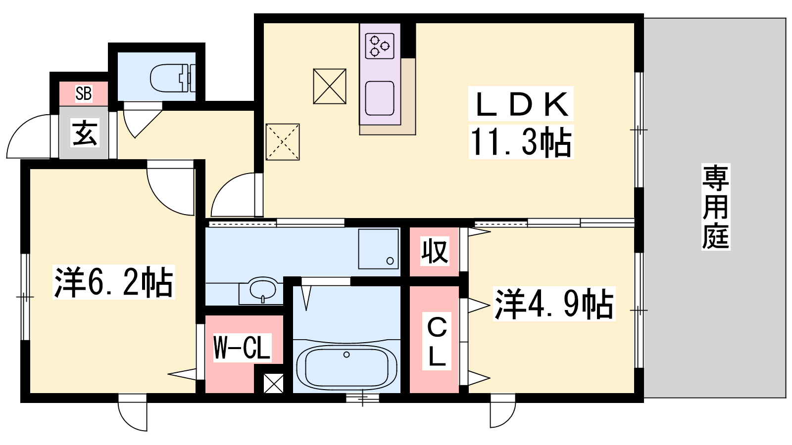 - LDK11.3帖、洋室6.2帖、洋室4.9帖