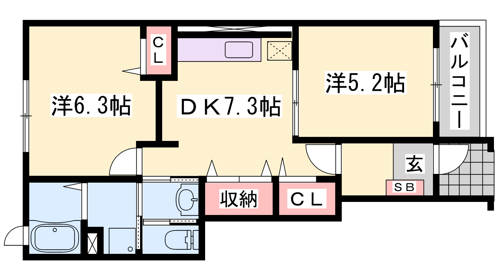 - DK7.3帖、洋室6.3帖、洋室5.2帖