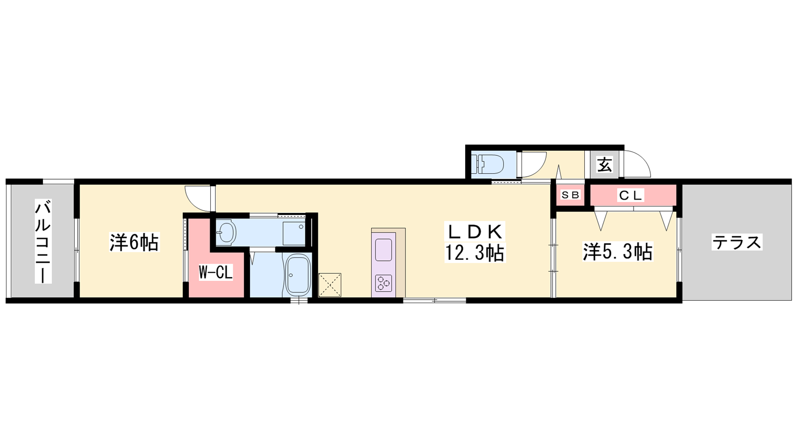 - LDK12.3帖、洋室6帖、洋室5.3帖