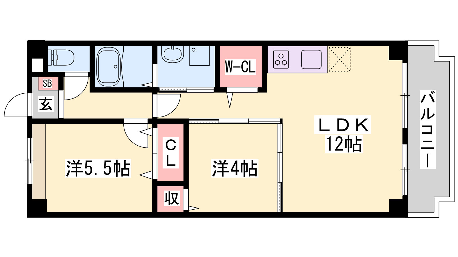 - LDK12帖、洋室5.5帖、洋室4帖