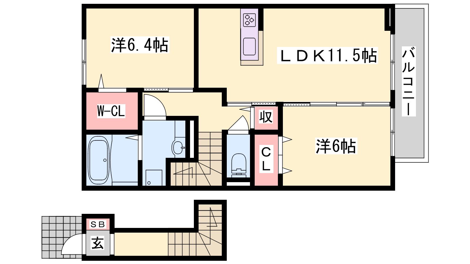 - LDK11.5帖、洋室6.4帖、洋室6帖