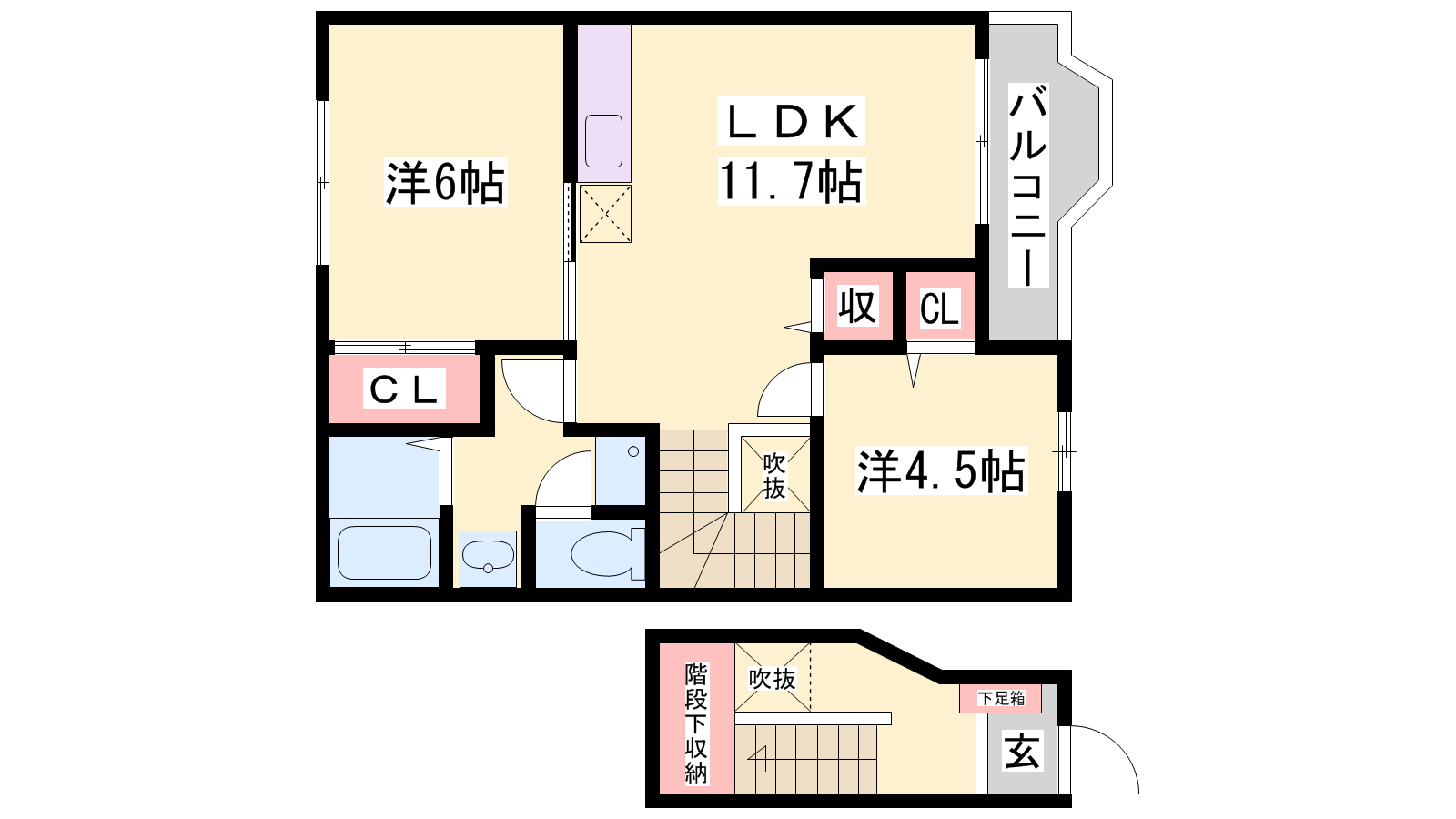 - LDK11.7帖、洋室6帖、洋室4.5帖