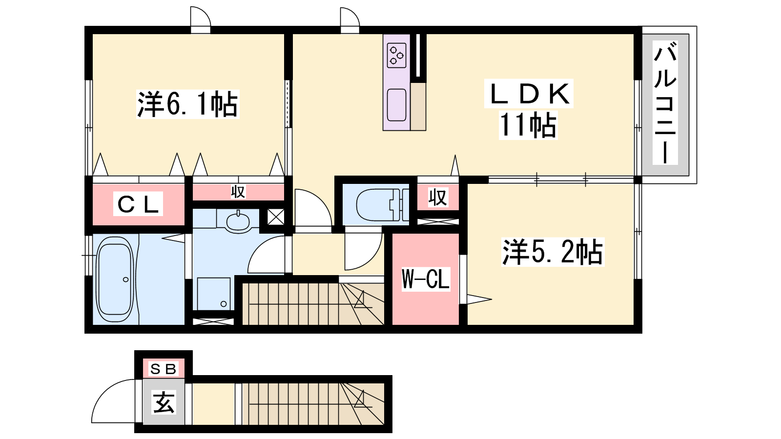- LDK11帖、洋室6.1帖、洋室5.2帖