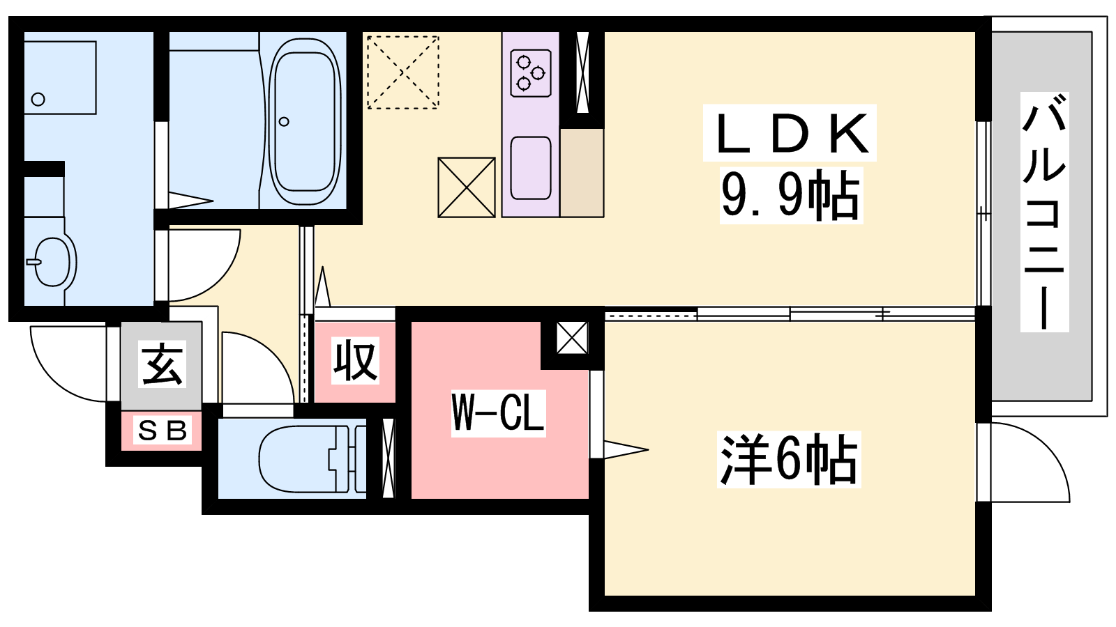 - LDK9.9帖、洋室6帖