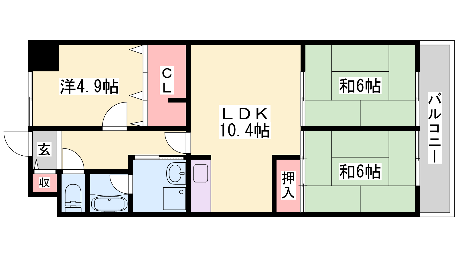 - LDK10.4帖、和室6帖、和室6帖、洋室4.9帖