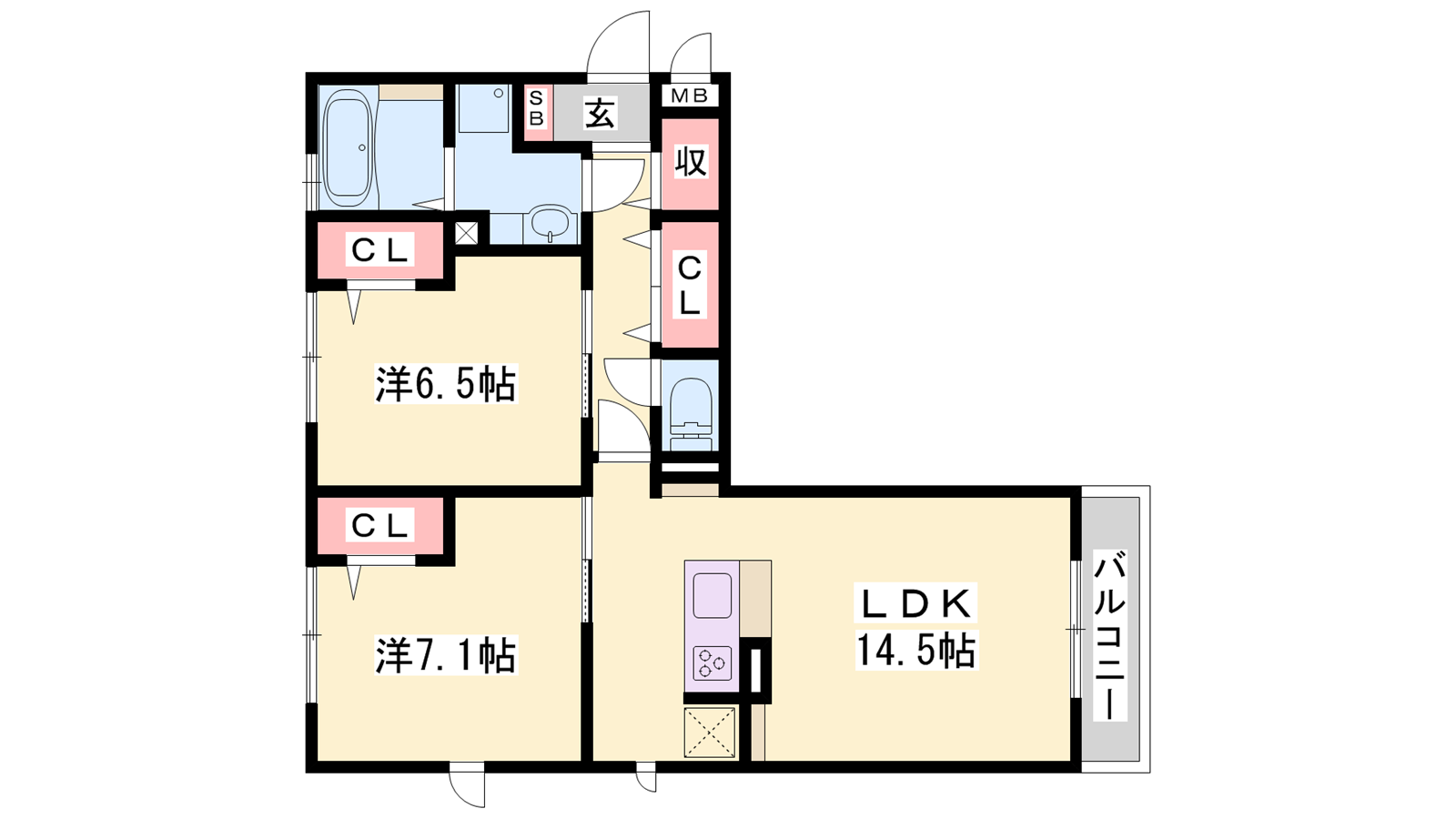 - LDK14.5帖、洋室7.1帖、洋室6.5帖