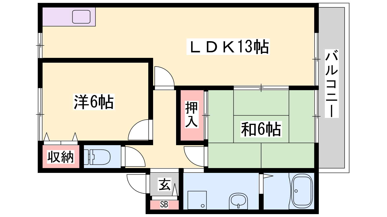 - LDK13帖、洋室6帖、和室6帖