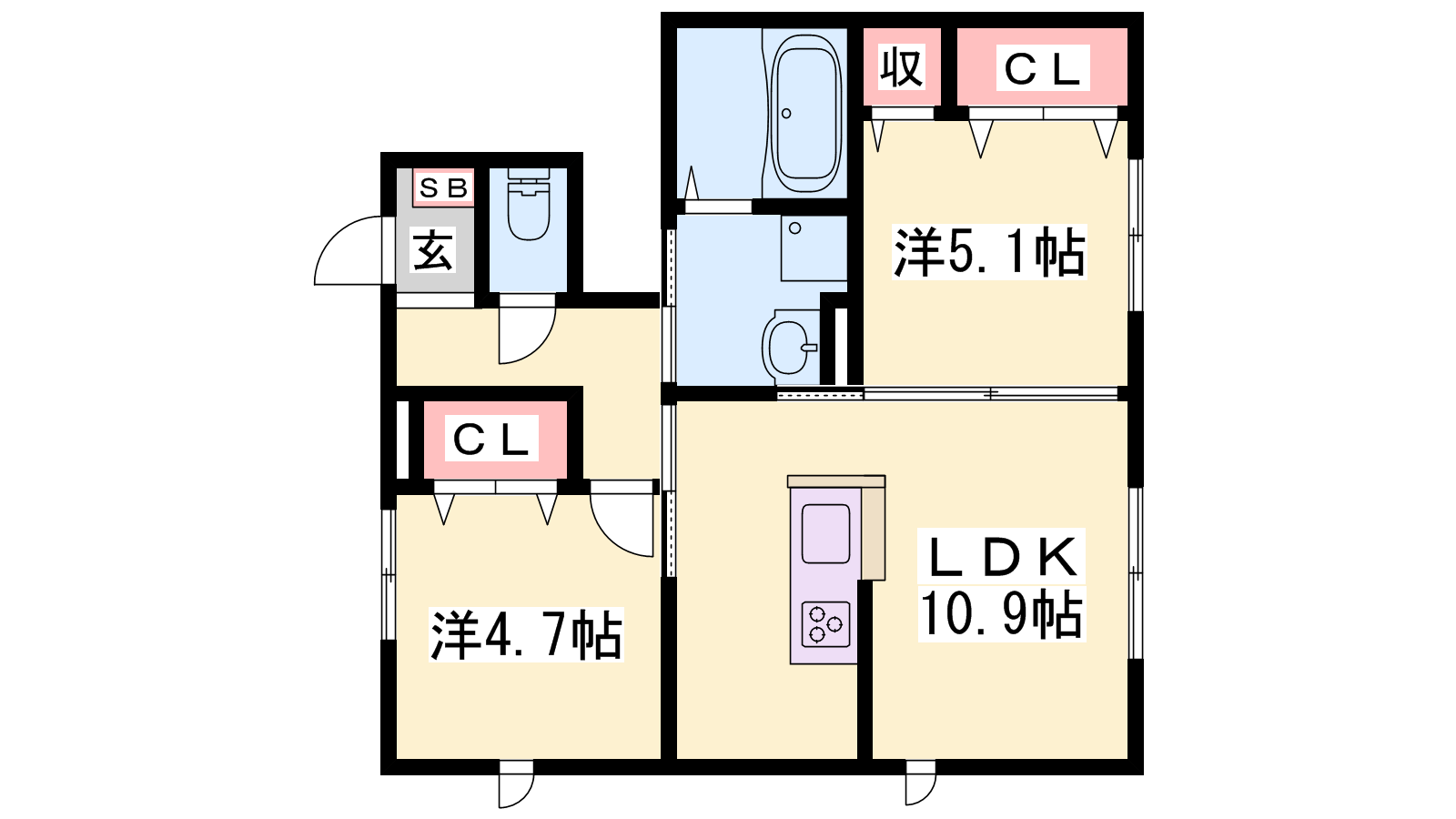 - LDK10.9帖、洋室5.1帖、洋室4.7帖