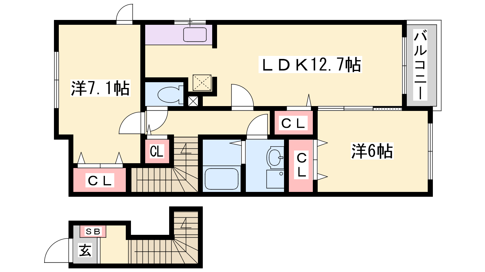 - LDK12.7帖、洋室7.1帖、洋室6帖