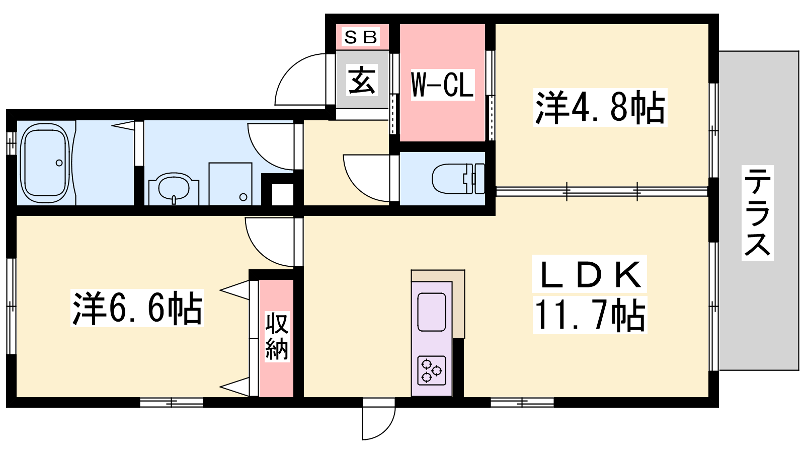 - LDK11.7帖、洋室6.6帖、洋室4.8帖