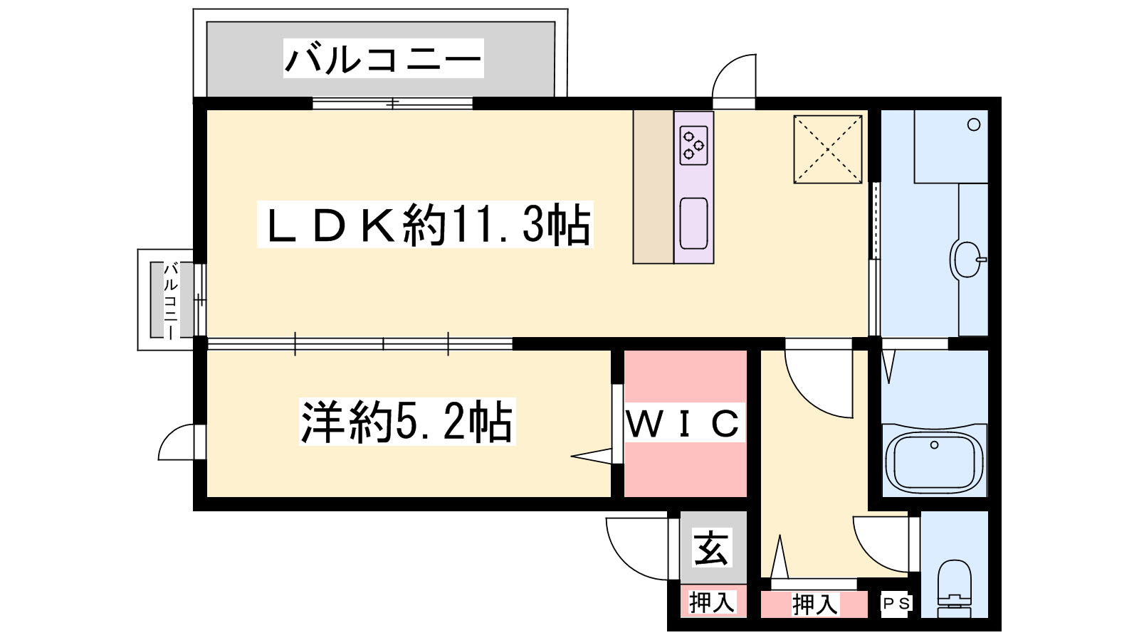 - LDK11.3帖、洋室5.2帖