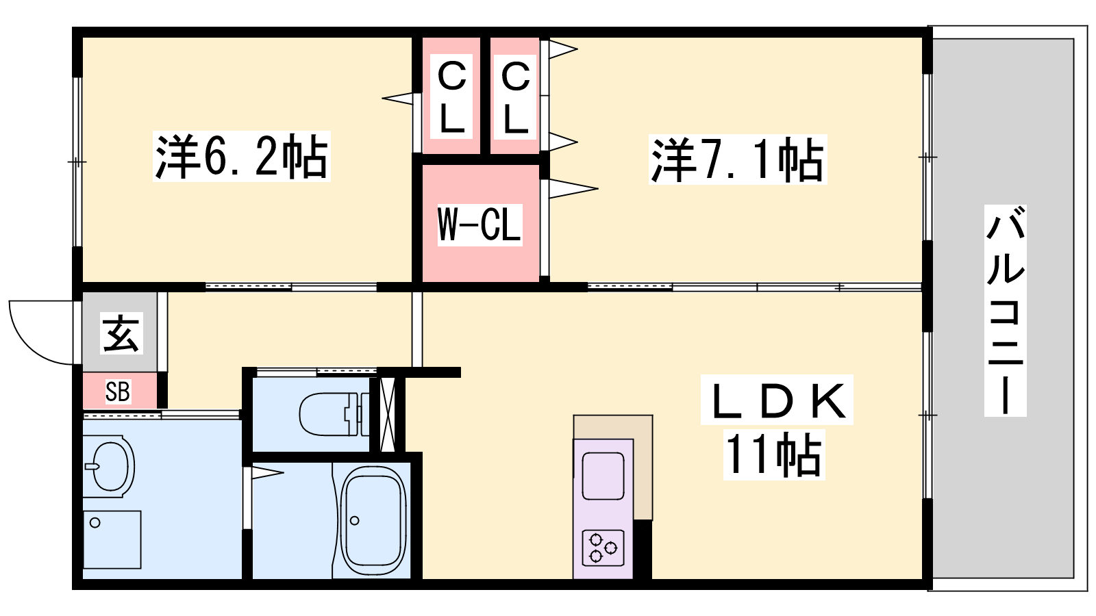 - LDK11帖、洋室7.1帖、洋室6.2帖