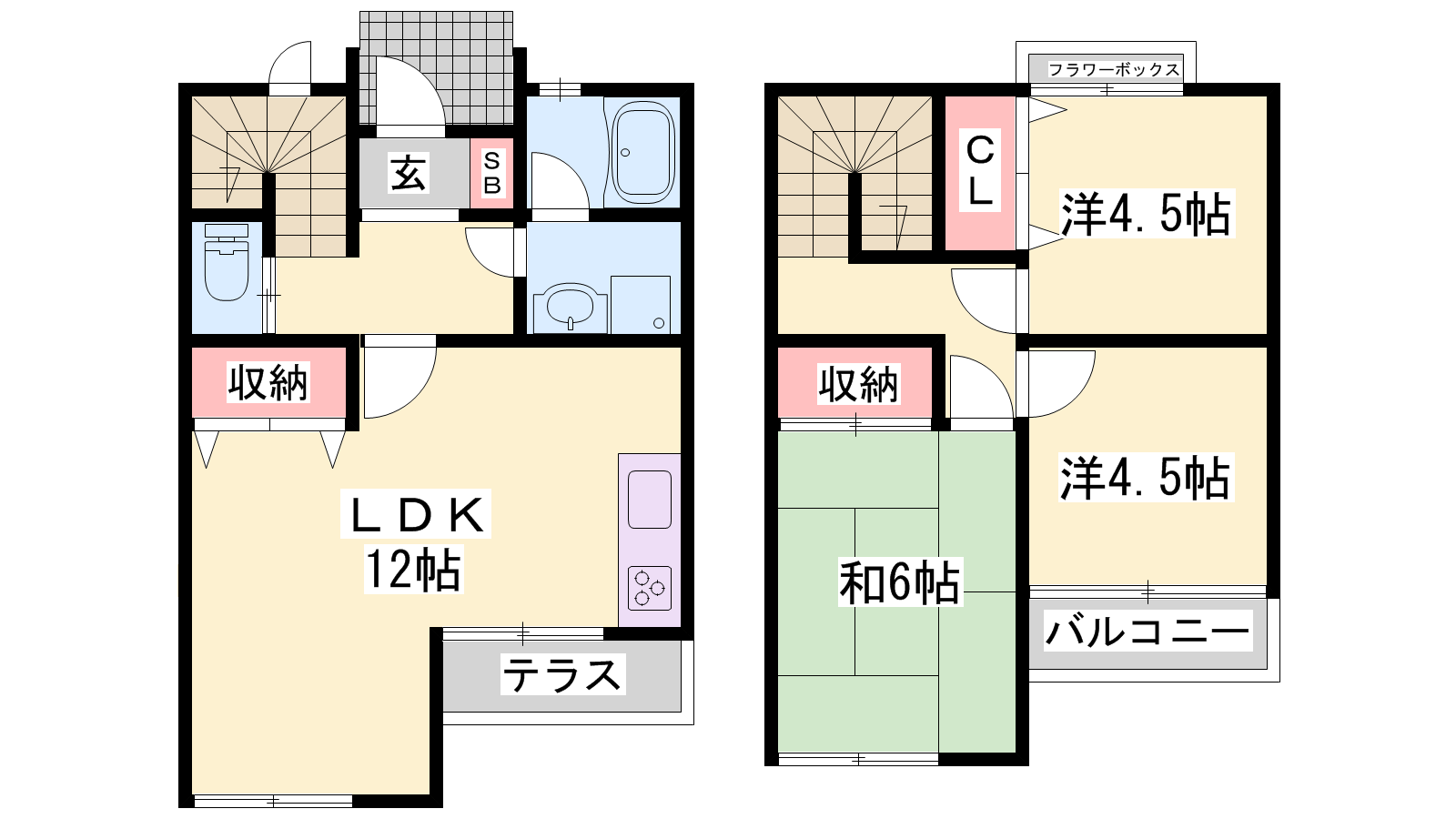 - LDK12帖、和室6帖、洋室4.5帖、洋室4.5帖