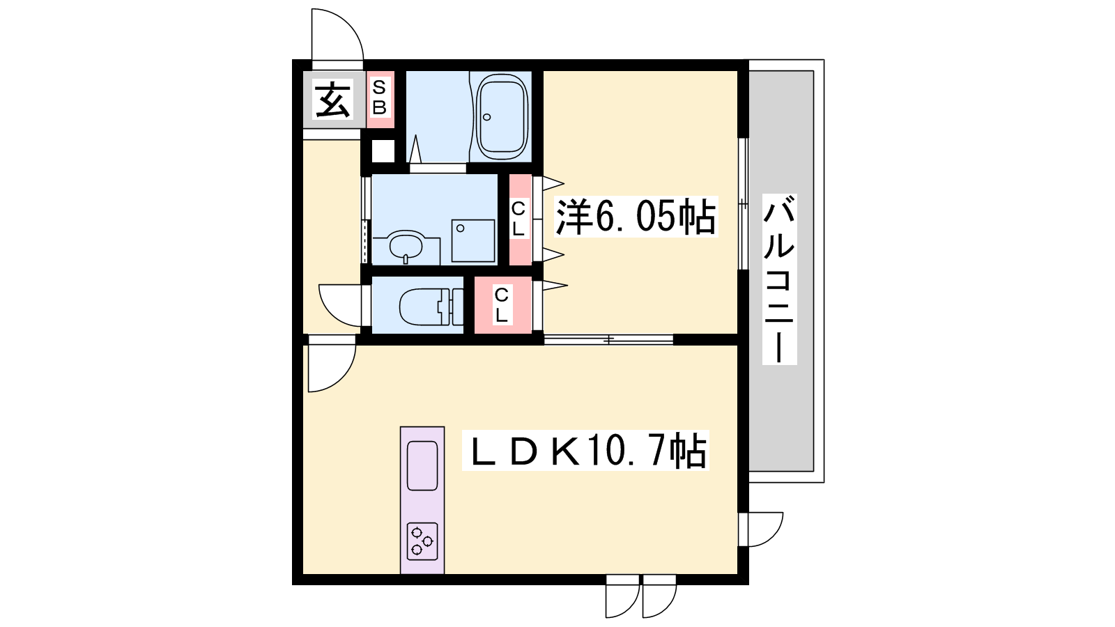 - LDK10.7帖、洋室6.05帖