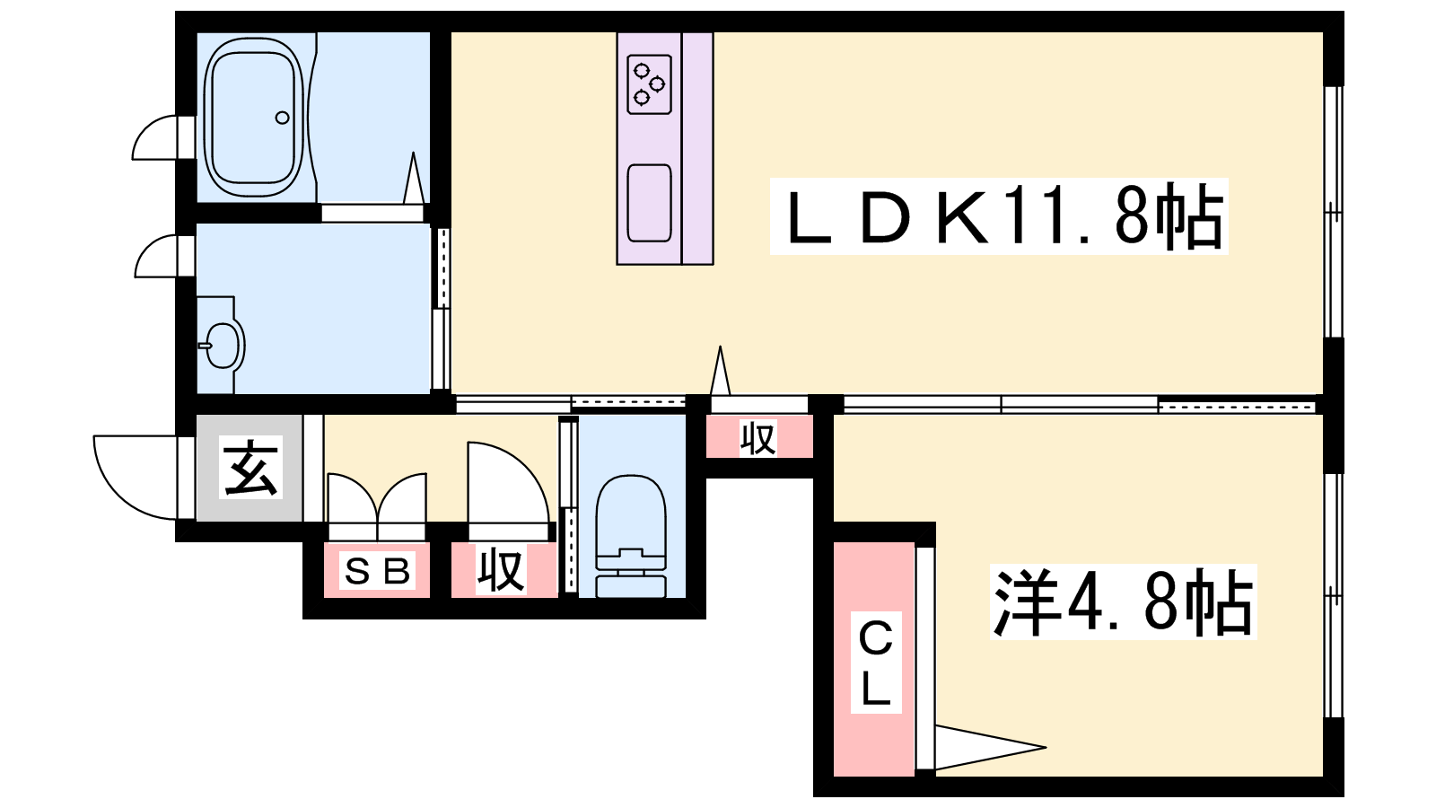 - LDK11.8帖、洋室4.8帖