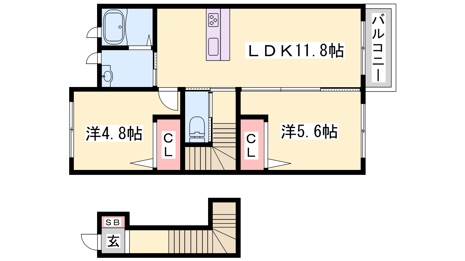 - LDK11.8帖、洋室5.6帖、洋室4.8帖