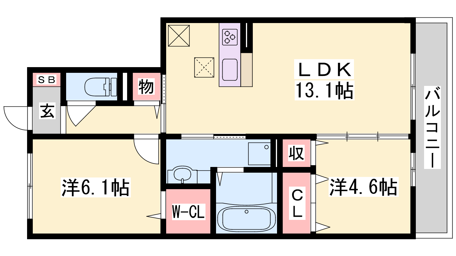 - LDK13.1帖、洋室6.1帖、洋室4.6帖