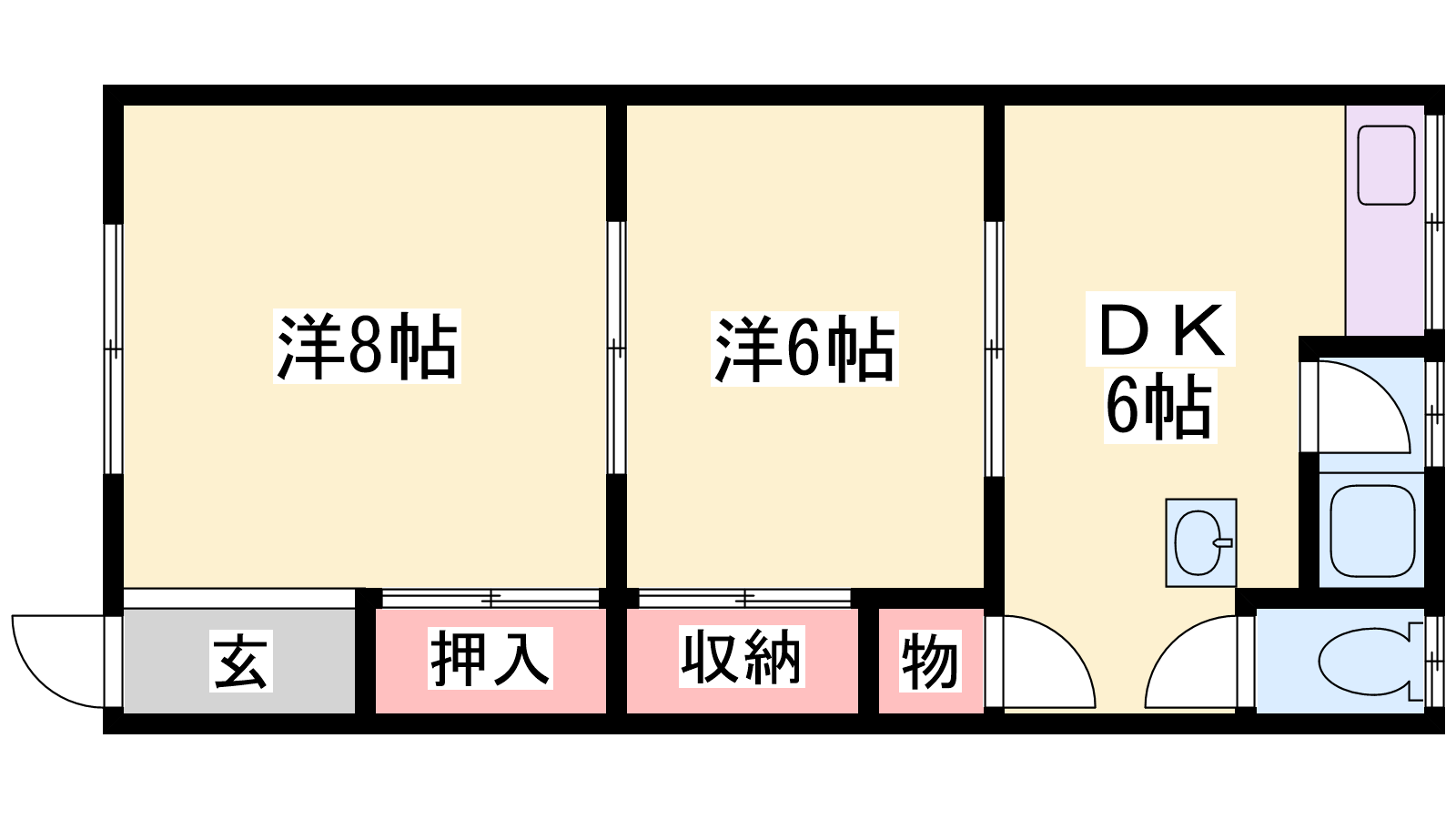 - DK6帖、洋室8帖、洋室6帖